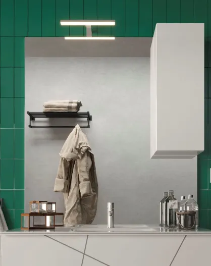 Sienna - Specchio a led con colonna integrata 1 anta H30 cm Laccato bianco lucido - 100x110x18 cm