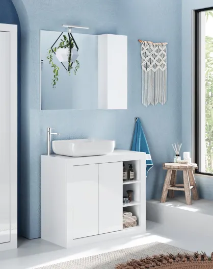 Bari - Mobile bagno sospeso laccato lucido bianco - 2 ante + 2 nicchie + lavabo da appoggio - 92x47x45 cm