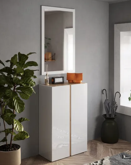 Ferrara - Armadio a 2 ante con specchio e 10 ripiani regolabili in laccato lucido bianco e rovere kadiz - 70x185x35 cm