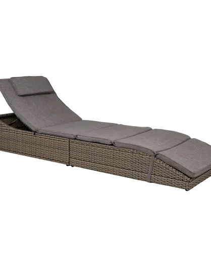 Lettino split in polyrattan grigio con cuscino kubu incluso - 200x60x35/80 cm