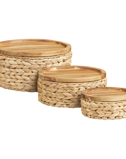 3 cestini con coperchio in legno giacinto d'acqua naturale