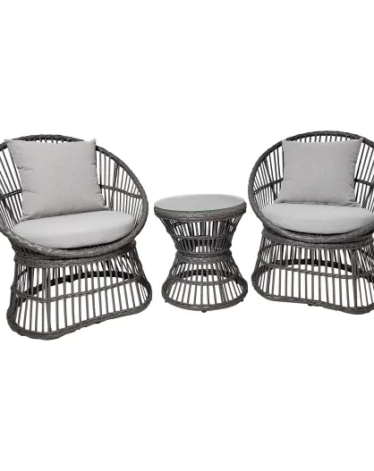 Set da salotto Natal con cuscini in rattan grigio inclusi - 64x48x76 cm