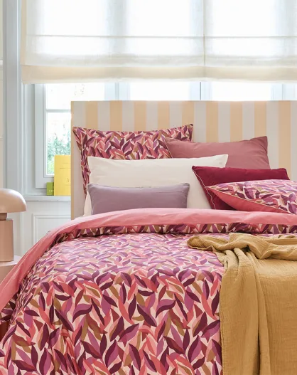Leaves - Set copripiumino rettangolare in percalle di cotone rosa scuro + cuscino