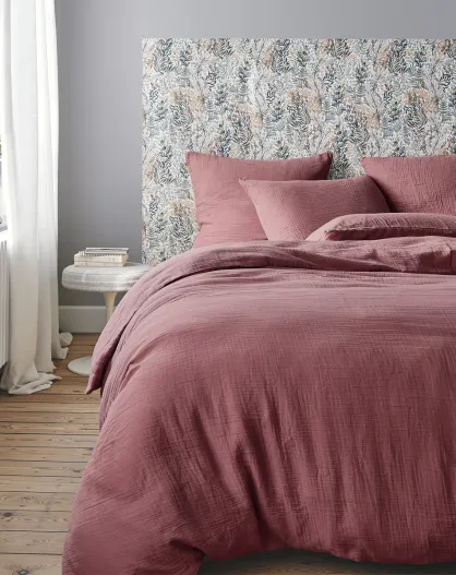 Tendresse - Copripiumino rettangolare + federa in garza di cotone lavato rosa Pink Canyon