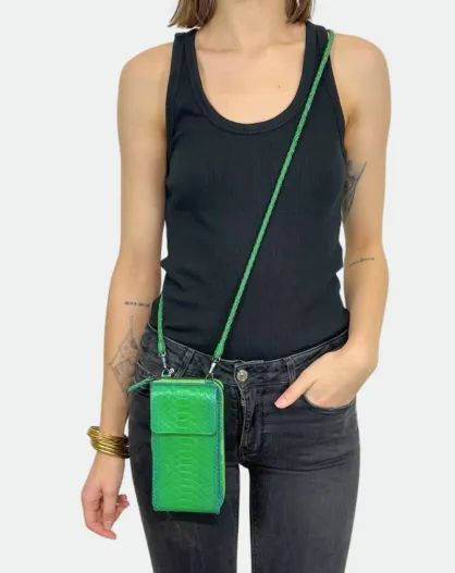 Pochette morbida grande in pitone color smeraldo - 31 x 20 cm