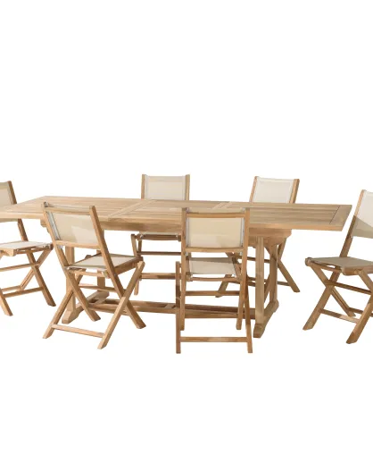 Set 1 tavolo rettangolare + 8 sedie Lombock in teak - 200/300x120x75 cm