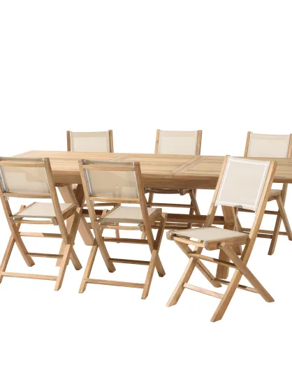 Set 1 tavolo + 6 poltrone impilabili Kim in teak - 220x100x78 cm