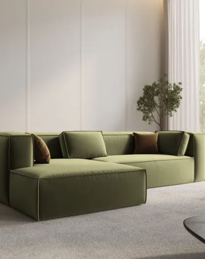 Divano angolare destro Venus 4 posti in velluto Verde - 248x160x90 cm