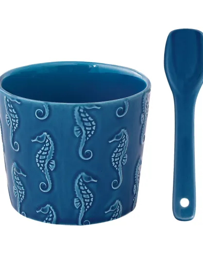 Coppa gelato SEA LIFE in porcellana blu con cucchiaio - 8,5 cm