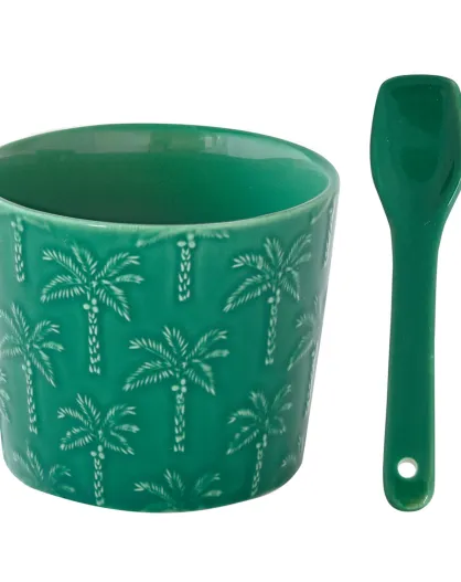 Coppa gelato in porcellana verde TROPICANA con cucchiaio - 8,5 cm