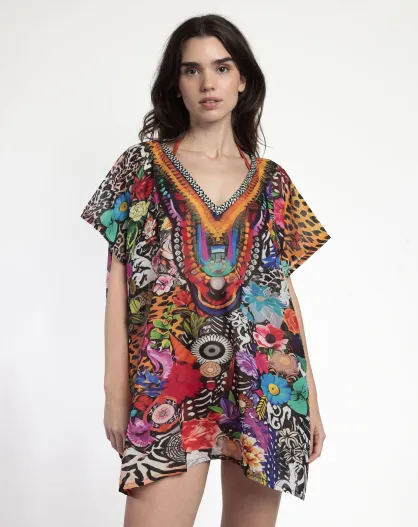 Abito caftano tropicale multicolor