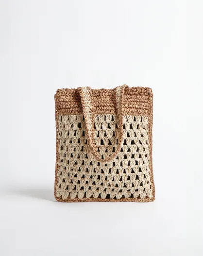 Borsa da spiaggia bicolore beige ecru - 30x6,5x35 cm