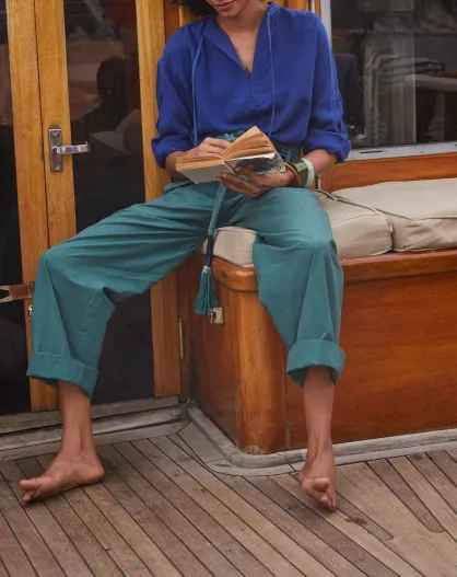 Pantaloni Marco in popeline verde Aspen