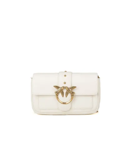 Borsa a tracolla Love One Pocket C in pelle di vitello bianca e seta - 20x12x3,5 cm