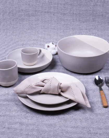 Set Terre de Sienne in ceramica grigio/bianca da 30 pezzi