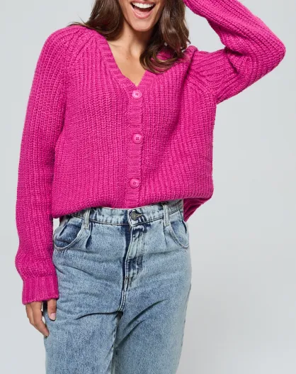 Gilet in misto maglia rosa salmone con bottoni a contrasto