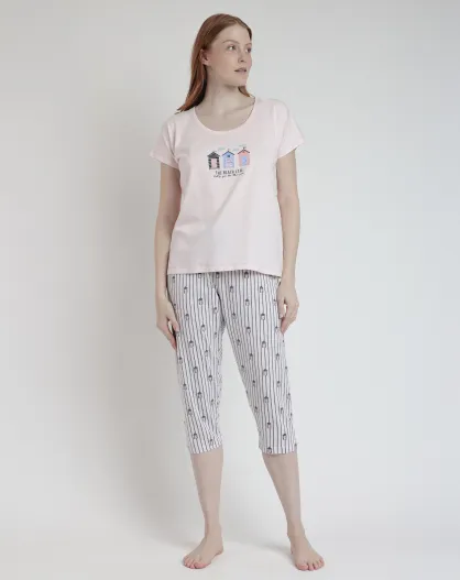 Pigiama rosa a maniche corte stile spiaggia