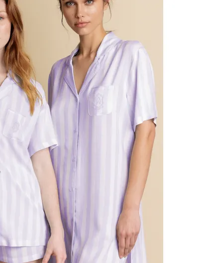 Camicia da notte a maniche corte a righe viola