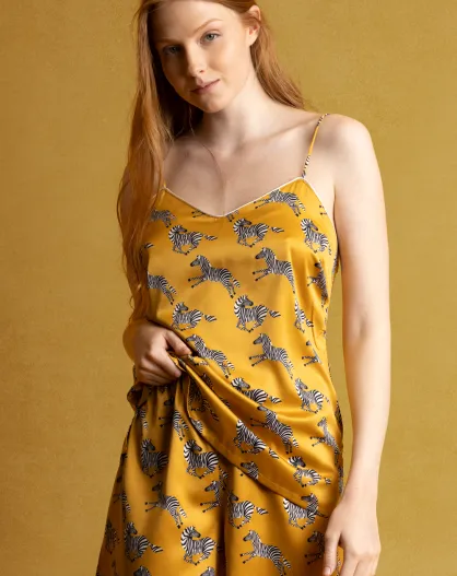 Lussuoso pigiama a spalla in oro zebrato ocra