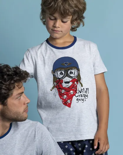 Pigiama a manica corta DIVER Wild Crazy Guy Jasper grigio