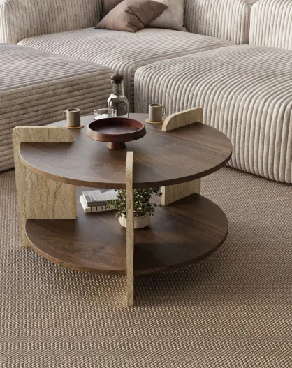 Tavolino Oalla in noce/travertino - 70x45x70 cm