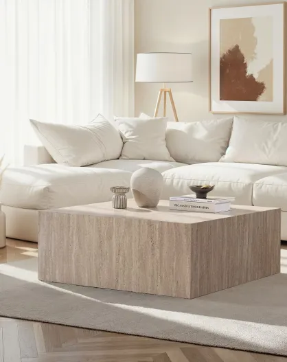 Tavolino Memo in travertino - 86,8x32,4x50 cm