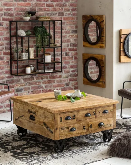 Sit - Tavolino da caffè antico rustico naturale con finiture nere antiche - 90x90x47cm