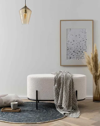 Fever - Panca imbottita in tessuto riccio bianco - 80x40x42 cm