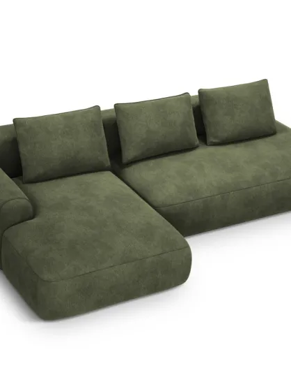 Divano angolare sinistro trasformabile in velluto a 3 posti con baule verde Ribes - 266x160x88 cm