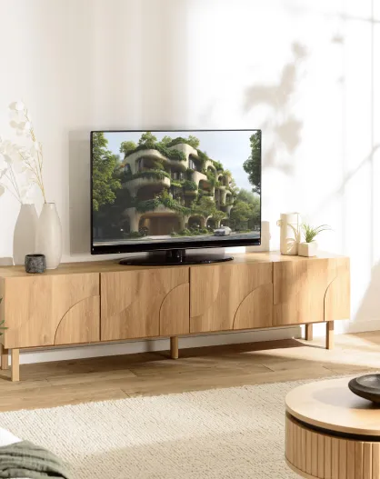 Porta TV a 4 ante con decoro naturale a motivi arrotondati - 200x42x55 cm