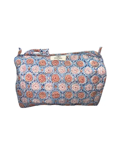 Borsa da toilette foderata e trapuntata stampata su fondo blu
