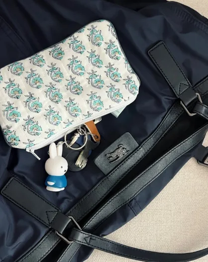 Pochette piatta Sambalpur con fodera impermeabile rosa acceso - 11×19 cm
