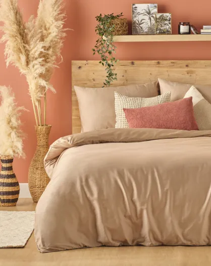 Copripiumino beige in raso di cotone lavato