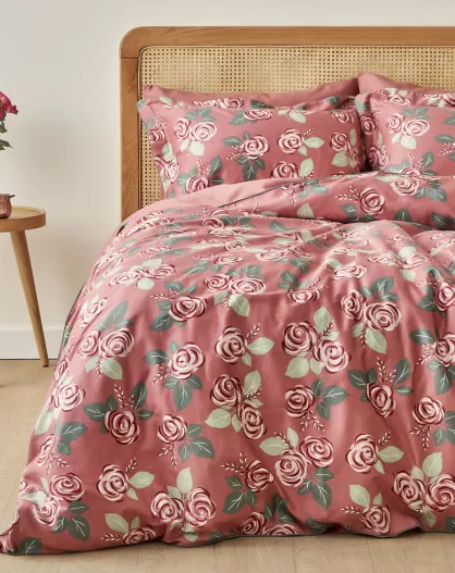 Copripiumino in percalle 100% cotone, 40 cm, finitura a bottiglia rosa antico