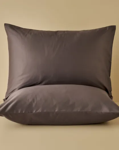Set di 2 federe standard in raso marrone 100% cotone