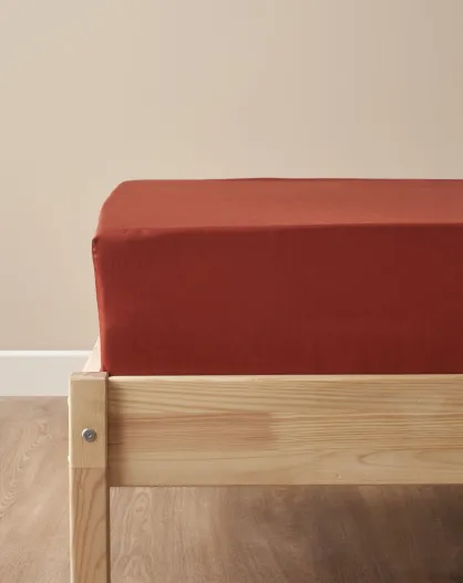 Lenzuolo matrimoniale Arno in raso di terracotta 100% cotone - 160x200x35 cm