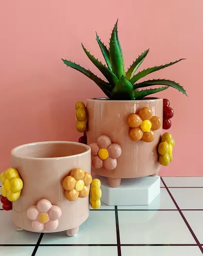 Vaso Noa con effetto piastrella rosa - 23x10,5 cm