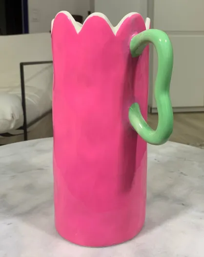 Vaso in ceramica Juliette Rosa intenso, forma ondulata - 17x12x25cm
