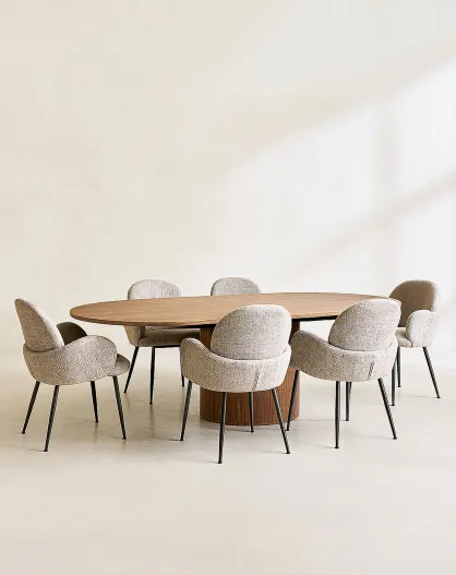 Set tavolo ovale allungabile Sierra effetto noce + 6 poltrone tweed tabacco -180/220 cm