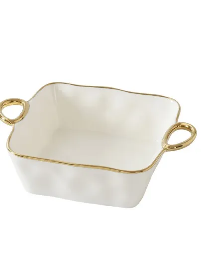 Pirofila quadrata Gold Handles bianca e oro - 27,9x20,3x7,6 cm