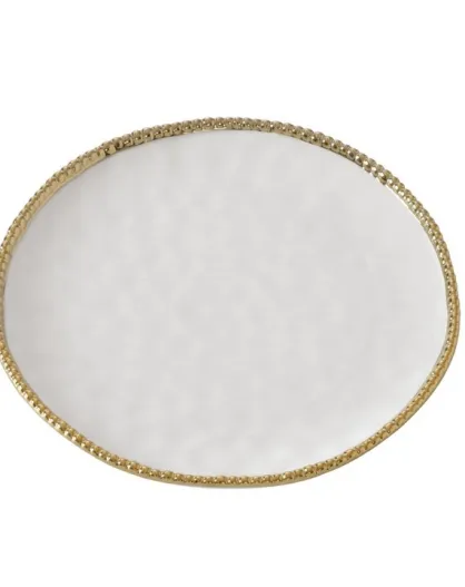 4 piatti piani rotondi Golden Salerno bianchi e dorati - D.27,9 cm