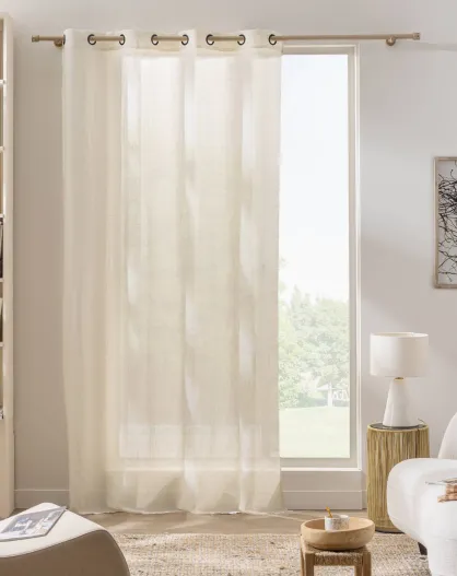 Velo con occhielli Sanya, effetto lino intrecciato a righe naturali - 140x280 cm