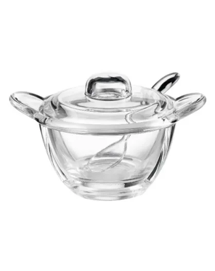 Tazza per formaggio/zuccheriera trasparente con cucchiaio - 16,5x12,5x10 cm