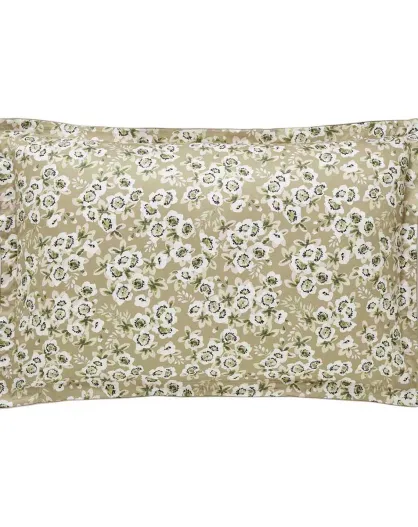 Federa per cuscino in raso di cotone biologico con stampa Blossom moon beige