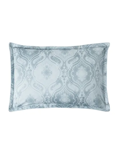 Federa stampata in raso di cotone biologico Shalimar blu baltico