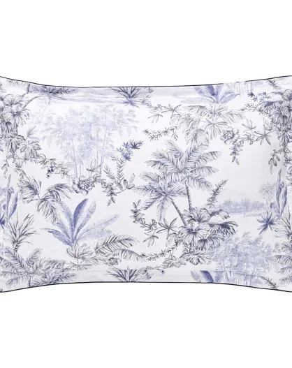 Federa per cuscino Rivages bleu de chine in raso di cotone biologico stampato