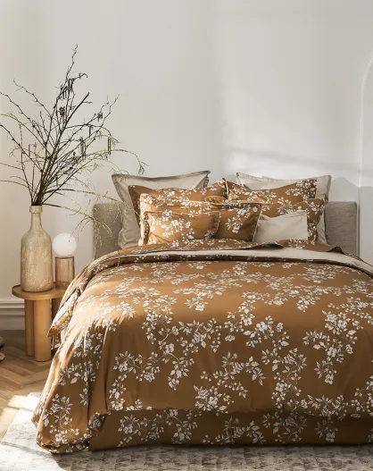 Copripiumino Vivienne in raso di cotone biologico stampato arancione