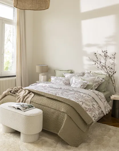 Copripiumino Cosmos red swirl stampato in raso di cotone biologico