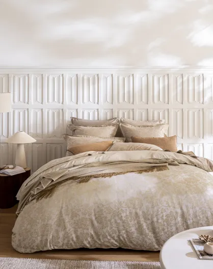 Copripiumino in cotone memory con stampa jacquard beige luna