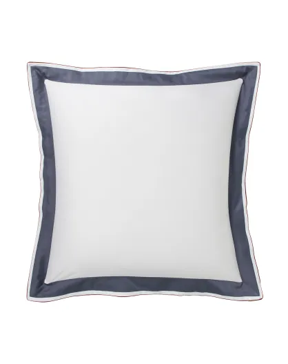 Federa in raso di cotone tricolore con fascia applicata Marceau bianco neve/blu marino